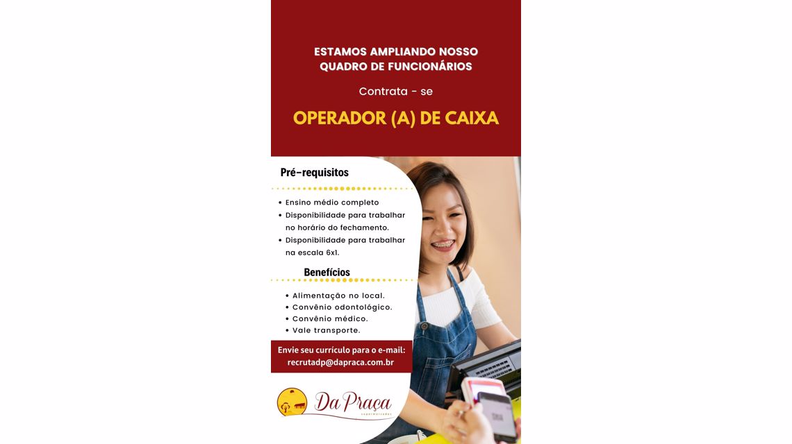 Estamos em busca de um profissional para atuar como Operador(a) de Caixa na nossa rede de supermercados. O trabalho é desafiador e oferece a oportunidade de fazer parte de uma equipe dinâmica e comprometida com a satisfação do cliente.